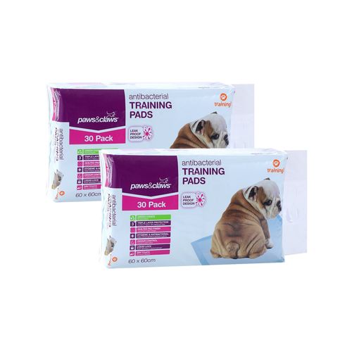 Paws And Claws - 2x 30pc 60x60cm Puppy/Dog/Pet Training Pads Antibacterial
