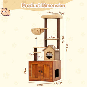 Advwin - 153cm Cat Tree with Litter Box Enclosure