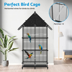 - Sturdy Construction: Crafted from high quality metal, this bird cage boasts high strength and rigidity, providing a solid structural support that enhances stability. The triangular roof panels and side reinforcements add structural integrity, making this birdcage both lightweight and stable.