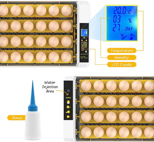 - LED Candle Light & Auto Egg Turning: Built in LED light for observing the growth of the fertilized eggs. Automatic egg turner simulating hen hatching environment, greatly improves the hatching rate.
