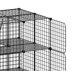 - Spacious and Convenient: With dimensions of (71L x 71W x 106H) cm, this cat enclosure offers ample space for 1-2 cats to play and rest comfortably. It features three front doors and a top skylight for easy cleaning, entering, feeding, and convenient interactions with your pets. The detachable black floor mats ensure cleanliness, and the sturdy black iron frames provide stability and prevent scattering or tilting.
