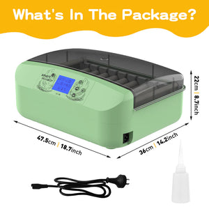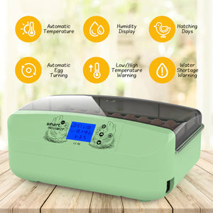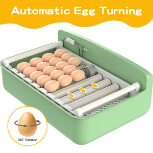The egg incubator holds 32 eggs and design for beginners or professional breeders who want to incubate eggs on a smaller scale.