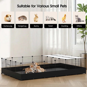 Solid Foundation: Our small animal pet playpen is made of high-quality coated steel, which is more durable and sturdy. The encrypted pet fence will not trap small animals, prevents injury and escape, provides ventilated and breathable, and prevents dampness and odor.