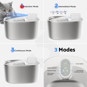 - 🐾Three Modes: Sensing mode, intermittent mode, and continuous mode, the three modes can be switched at will. Different working modes can be switched and adjusted according to the pet’s needs and actual conditions to provide pets with a proper drinking experience.