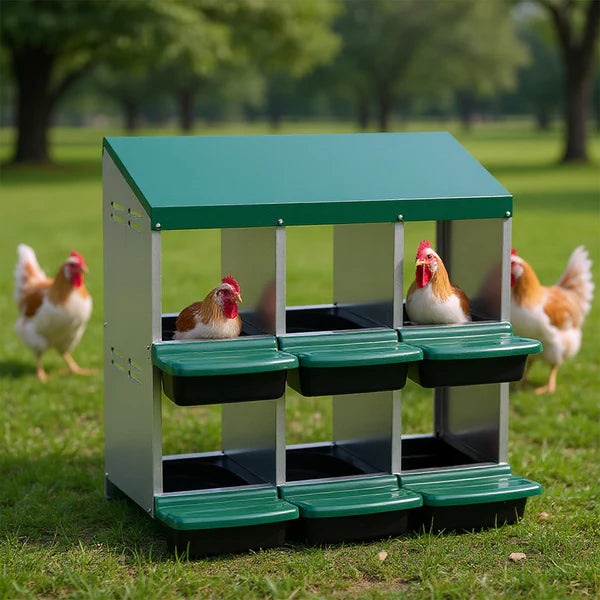 - Built to Last: Crafted with premium metal panels, this chicken nesting box delivers exceptional rust resistance for lasting durability. The chicken roll away nesting box can be used outdoors for a long time. Vents on both sides provides air circulation inside the nest box, creating a fresh, dry and comfortable egg laying space for the hens.