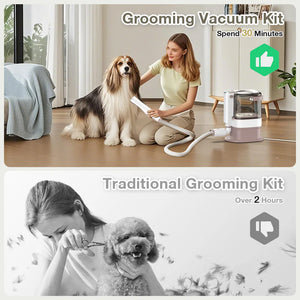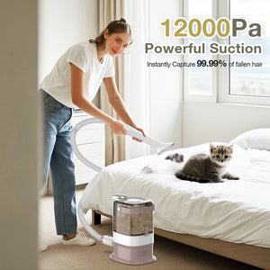- Grooming and Vacuuming All at Once: Are you bothered by pet hair everywhere? This dog grooming kit has vacuum function. 12,000 PA suction can capture 99% of fallen pet hair directly into the dust box when grooming or shedding. Hair won’t be everywhere anymore after grooming, keep your home clean and tidy and save time