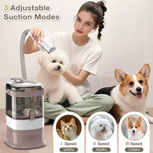 - Low Noise Design & 3 Adjustable Suction Levels: Pet grooming vacuum for dogs cats has 3 adjustable suction levels to choose. The lowest noise is only 55dB, so that your beloved pets will feel relaxed and not be scared during grooming