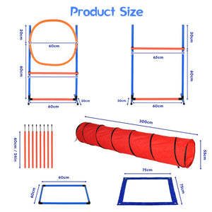 - What You Will Get: 2 x Jump Hurdle, 1 x Jump Ring, 1 x Pause Box, 1 x Tunnel, 8 x Weave Poles, 1 x Whistle, 1 x Tennis, 1 x Frisbee, 1 x Food Bag, 1 x Storage Bag. Everything you need for a complete agility training setup, ready for immediate use and fun.