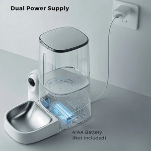 - Safety and Convenience: The wifi cat feeder includes a tilted stainless steel bowl that is safe and easy to clean, with dishwasher-safe convenience. The dual power supply ensures uninterrupted feeding during power failures.