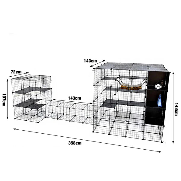 - Spacious Area: By combining two cat enclosures (measuring 72cm x 72cm x 107cm and 143cm x 143cm x 143cm), you can create a generous space for 1-6 cats to play and rest comfortably.