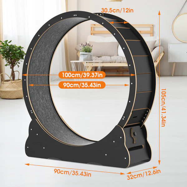 - High Quality Material & Sturdy and Durable: This cat running wheel is made of wood and is very sturdy. This treadmill wheelbase is widened to completely wrap the running wheel, very stable without worrying about tipping over.