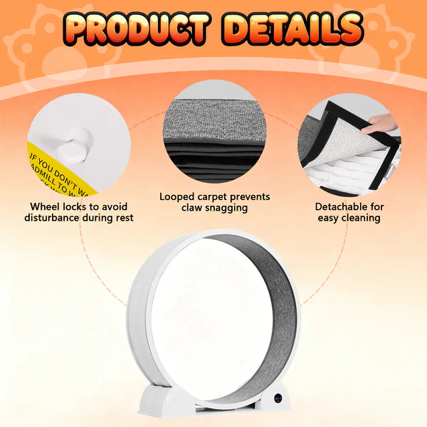 - Cozy Carpet on Wide Surfaces: The 110cm wheel comes with a soft and nonslip carpet that is not only ideal for cats to walk and run but also comfy to rest. Connected by Velcro, the cover inside is easy to detach and clean for your cats’ hygiene.