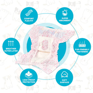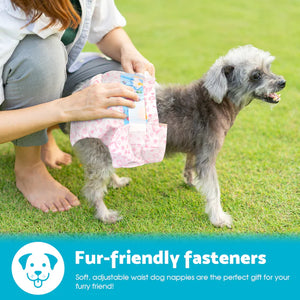 - Comfortable Dressing: No matter how wiggly your little girl is, the unique stretchy fabric of all-absorb disposable diapers will fit her comfortably and securely, keeping your dog dry and comfortable
