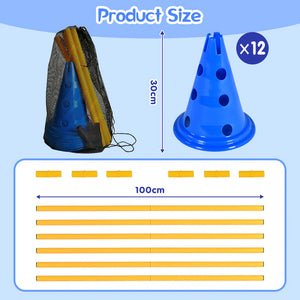 - Package Including: You will get 12pcs agility training cones, 6pcs agility training rods and 1pcs black net bag. Rich combinations can help your dog improve agility and speed more quickly and effectively.