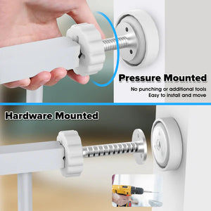 - Easy Installation: Our tall dog gates for doorways comes with 4 adjustable pressure bolts, no tools required, no need to drill holes, and no damage to your house wall. This cat gate for doorway is renter-friendly and works well as a cat gate indoor or tall pet gate for cats in high-traffic areas.