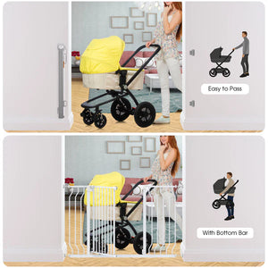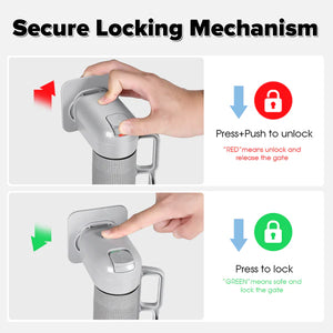 【Safety Locking Use:】Retractable gate lock simply press and push to easily lock and unlock the gate with one hand, ensuring that adults can easily operate the gate with one hand, keeping curious little ones and pets from mischievously seeking freedom.