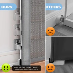 【Easy Installation:】Can be installed at top and bottom of stairways, doorways, hallways, indoor and outdoor use. With the tools provided, you can have your new mesh child fence installed in minutes. You will get: Retractable mesh gate x1, Bracket x2, Latches x2, Wall anchors x8, Screws x8, Instructions x1, Tape x 8. Using the tools provided, you can have your new retractable gate installed in minutes.