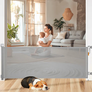 Advwin Extra Wide Retractable Baby Gates may double as a room divider or barrier, giving you some extra configuration options. The extra wide retractable gate features a soft, durable mesh that keeps children and pets from bumping or injuring. Preventing your baby from entering rooms that may be dangerous for them, such as the bathroom or kitchen.