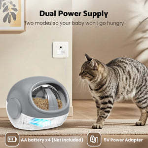 - Dual Power Supply: Never worry about power outages with the pet feeder dual power sources. Choose between a wired connection via the included USB adapter or a portable battery-powered option using 4*AA batteries, ensuring your pet is always fed on time.