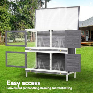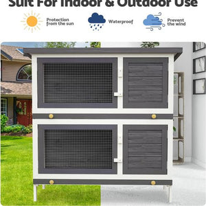 - Easy to Access & Easy to Cleaning: Multiple doors make the rabbit hutch easy to open and close, so that you can interact with pets and pull out the tray, so that you can easily enter the internal space for cleaning, feeding and other daily tasks.