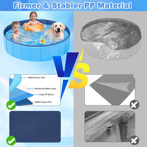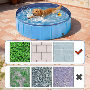 - 【🐶 High-Quality Non-Slip Upgrade Pool】The dog pool is crafted from premium-quality PVC material, offering a solid and durable texture. It features a built-in thick, high-strength PP sheet that provides stable support for the entire structure, eliminating any concerns about collapse during your pet's playtime. The pool bottom incorporates Diamond-patterned slip-resistant sole, ensuring your furry friend stays securely grounded even when jumping or splashing around. This allows them to enjoy water play with complete peace of mind. Note: To prevent a puppy's nails from scratching the inner walls, causing damage or leaks, it is recommended to trim its nails promptly.