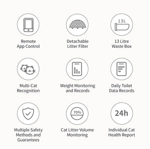 With an extensive range of technology to maximize convenience and safety, your fluffy friend will adore this new auto litterbox! Utilising the anti-pinch sensor to prevent incidents and situations that would leave your cat hurt or stuck, the SCOOPER has over ten safety guarantees for peace of mind. In addition, the infrared sensor stops the litterbox from operating when your cats are entering, and the gravity sensor allows the litterbox to remain stable and eliminates the risk of falling over. While the panel control system gives you a simple and effective way to adjust the litterbox, the App feature provides much more! Being able to detect multiple cats and keep a constant 24-hour health report, you’re able to stay in touch with your fluffy friend’s health at all times! Recording throughout the day, week, and year, we understand that every cat parent deserves to know how their pets are doing. Every litterbox has a manual cleaning function, but the CATLINK offers both an automatic and timed option! While servicing your fluffy friend, it also eliminates all odours and smells caused afterwards with the applicable deodorizer. Alongside a generous 13L Waste box, the CATLINK SCOOPER covers all your fluffy friend’s needs.