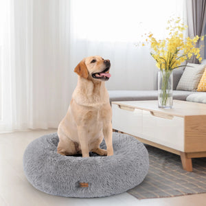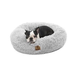 Charlie's - Shaggy Faux Fur Donut Calming Pet Nest Bed - Grey