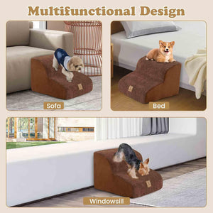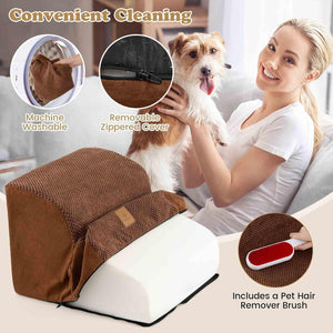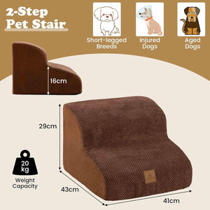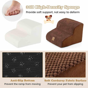 Costway - 2-Tier Dog Stairs Foam Pet Ramp - Brown