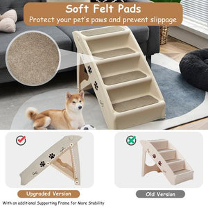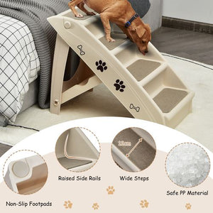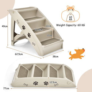 Costway - 4-Step Dog Ramp Steps Foldable Pet Steps Stairs Portable Climbing Ladder - Beige