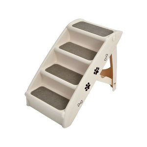 The carpeted 4-step stairs allow your little pet to reach sofa or bed with ease, relieving pressure on paws. Sturdy and non-toxic PP frame is durable and stable for daily use. Its built-in side rails and non-slip pads ensure safety for your pets and prevent the ramp from slipping when in use. The lightweight steps can fold compactly and can be placed under the bed or couch without taking much space. Also, it can be used at the living room, bedroom, pet shop, etc. Why not buy a one and enjoy the happy time with your pet?