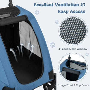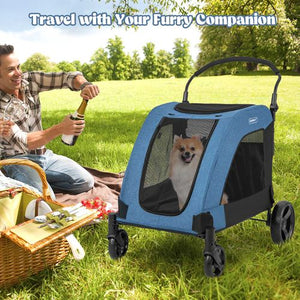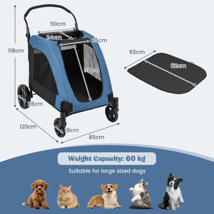 Costway - Extra Large Pet Stroller Dog Cat Carrier Cage Foldable Pet Pram Travel Cart - Black