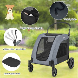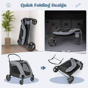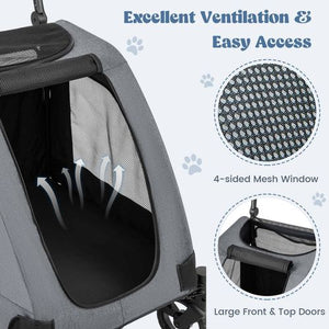 Costway - Foldable Pet Stroller Dog Cat Carrier Cage Extra Large Pet Pram Travel Cart - Grey