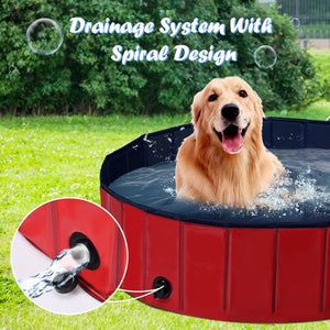 Our pet pool would solve all the problems! As it is wide enough, even your kids could play with your pets inside the pool. There's no need to worry about the stability. Our pet pool is made of thick MDF board and durable PVC cover for long service time. Most importantly, Anti-slip bottom and wall guarantee better protection and prevent from scratch. A drain valve below can be really helpful when you need to empty water.