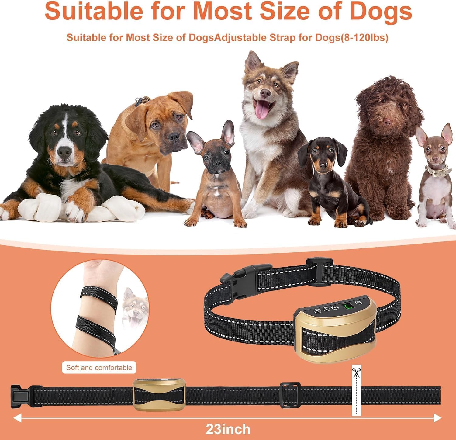 Dog Bark Collar, Dog Bark Collar for Small Medium Large Dogs with 4 Training Modes and 7 Level Sensitivity Adjustable, Rechargeable Bark Collar No Shock for Dogs with Beep Vibration Shock, Gold