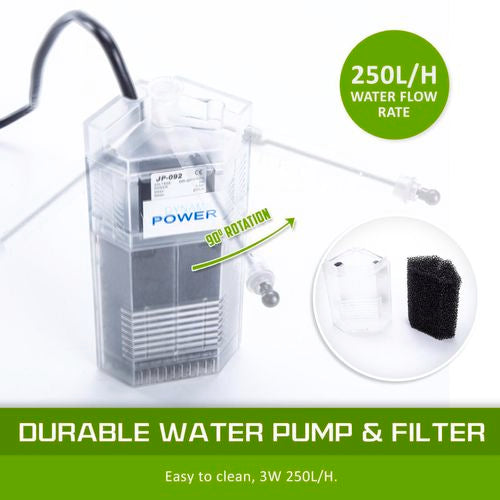 - 3W water pump with water filter with very quiet compressor and low vibration to keep your environment comfortable