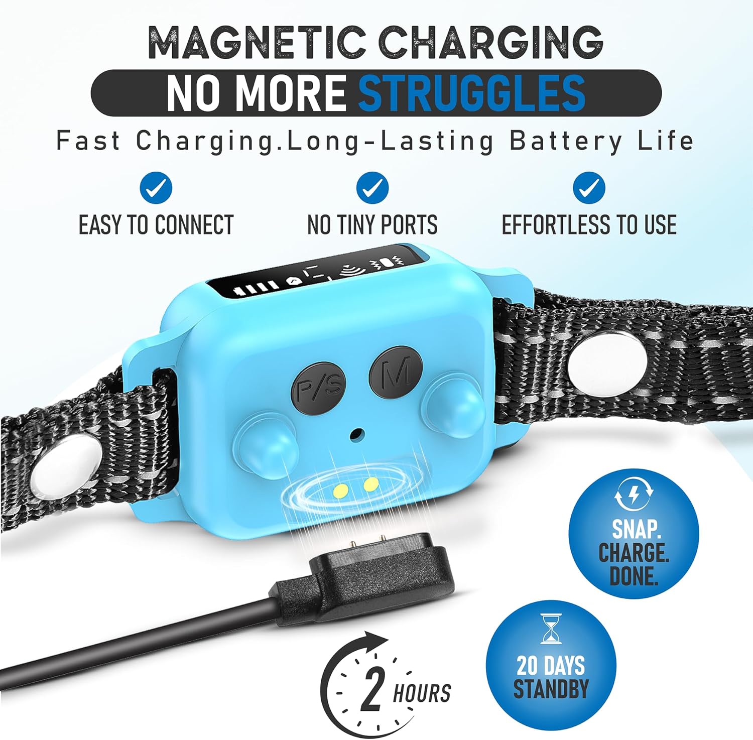 Bark Collar for Small Dogs 5-15 lbs with Magnetic Charging – No Shock, 3 Beep & Vibration Modes, 5 Sensitivity Levels – Humane Stop Anti-Barking Device – Dog Training Bark Collar (Blue)