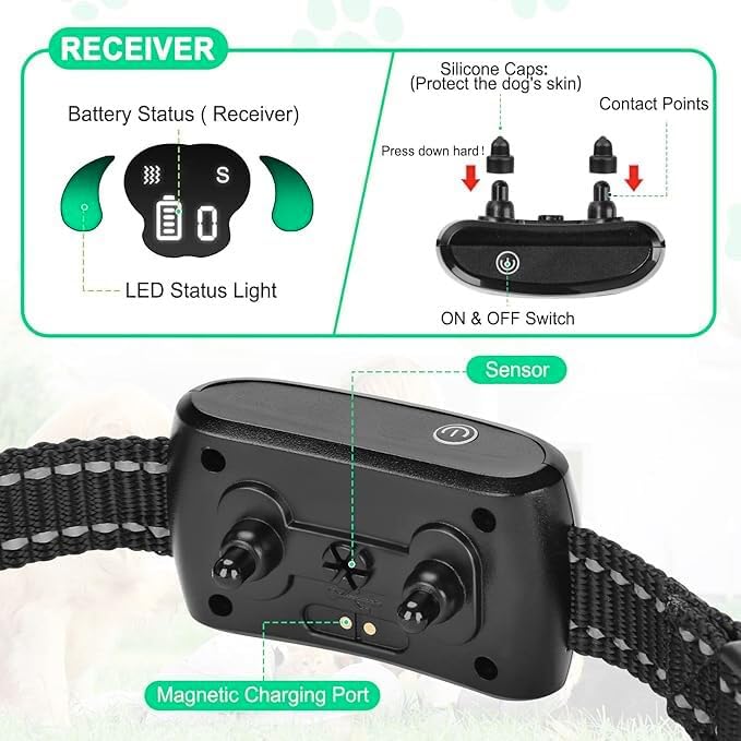 - Safe, Shock-Free Design: This dog training collar uses sound and vibration to gently train your dog, offering a humane and safe alternative to electric shocks. It's an ideal choice for pet owners who prioritize their dog’s well-being while effectively managing behavior.