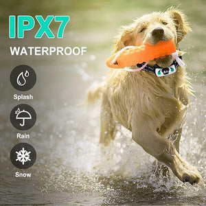 - IPX7 Waterproof: Our dog training collar is equipped with IPX7 waterproof technology, allowing it to be submerged in water up to 1 metre deep. This makes it the perfect solution for outdoor training, no matter the weather. Rain or water play won’t stand in the way of helping your furry friend learn and improve.