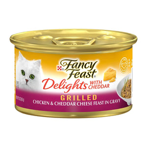 FANCY FEAST - Delights With Cheddar Adult Wet Cat Food Grilled Chicken & Cheddar Cheese Feast in Gravy 24x85g