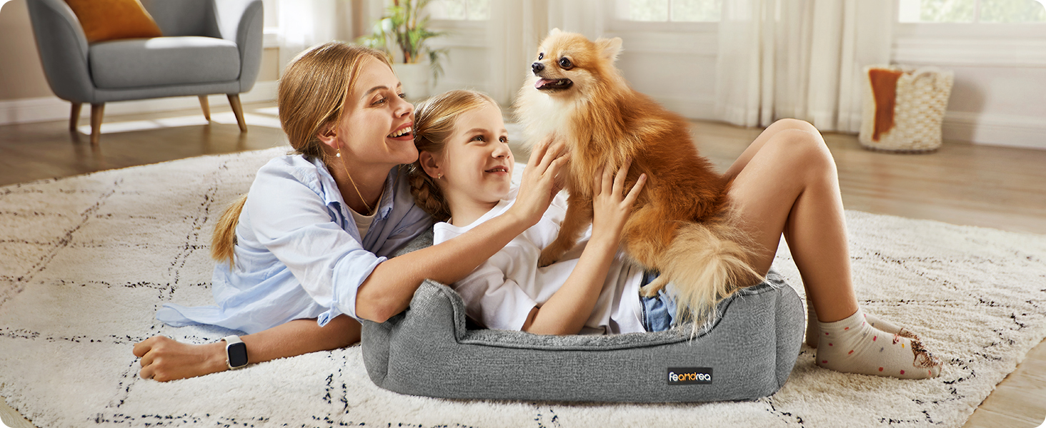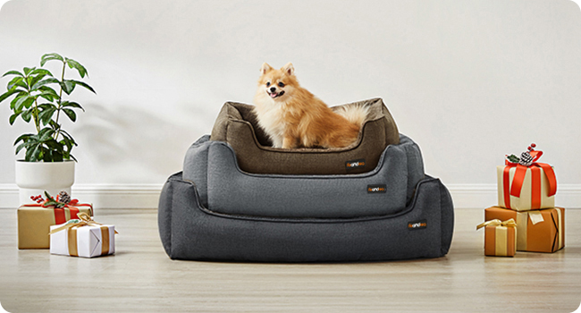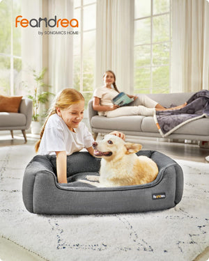 Feandrea - Dog Bed, Linen Look, Washable Cover