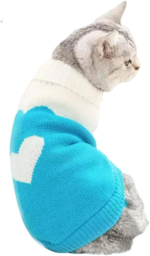 GAHOSG - Cozy turtleneck sweater for small dogs & cats – perfect for teacup poodles and chihuahuas, Blue Heart.