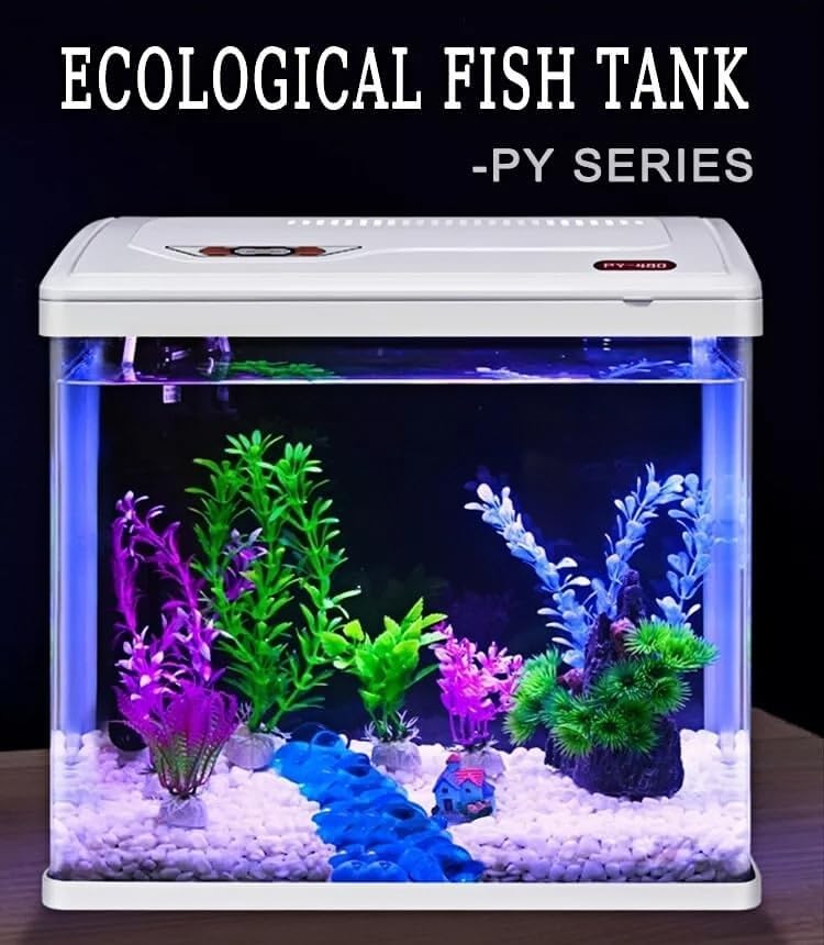 The PY Series all in one aquarium is a must have item if you are new to having fish as pet. It comes with a very bright and energy efficient LED light. It is a very user friendly fish tank and for budget, beginner will love this product! The tank is made from ultra-clear HD glass and this is much more scratch resistant and clearer than acrylic fish tanks. This special glass is much clearer than conventional glass and it gives your aquarium extra clarity to truly bring your fish colour! The fish tank will look even more beautiful with your decoration inside because the LED light combined with the clear glass will enhance the color of your aquarium environment. The aquarium suits both freshwater and saltwater fish/water animals. The size will suit many places, including space-limited apartments. Grab this amazing aquarium and add to your living room a touch of beauty and fun! Specification: Voltage: 110~220V 50Hz Upper Filtration Automotive Grade Float Glass Double-arc Three-sided Integrated PACKAGE INCLUDE: 1 x Fish Tank Complete Set Please note: The fish tank does not come with a heater or thermostat. Please read the note before purchase, thanks