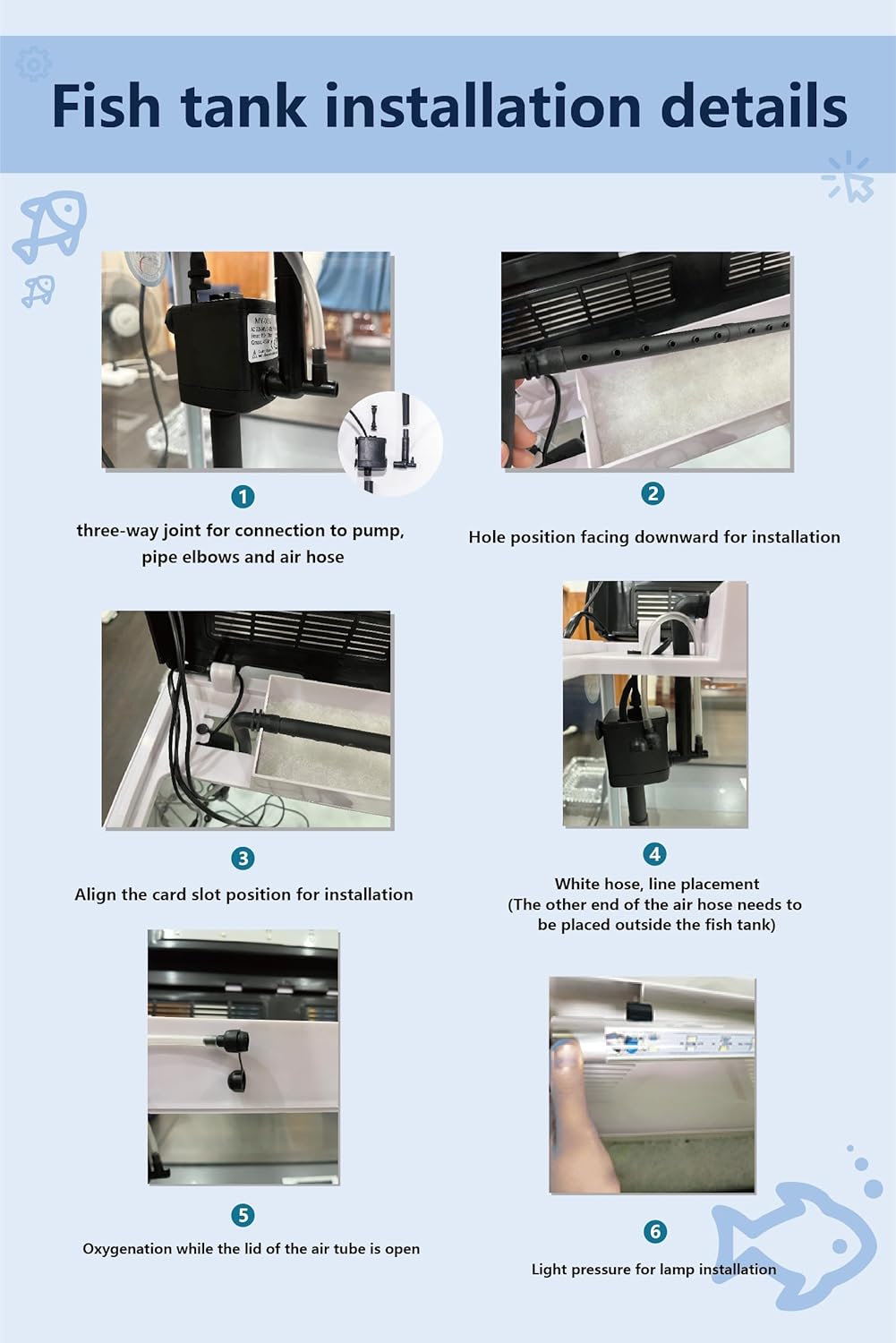 - 【QUIET OPERATION】: The three-in-one silent water pump utilizes a high-efficiency, energy-saving motor that eliminates noise disruption in your home. Glue sealing to eliminate potential safety hazards. Providing a tranquil atmosphere while delivering powerful oxygen enhancement flow and pumping features.