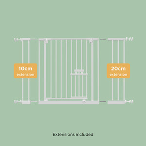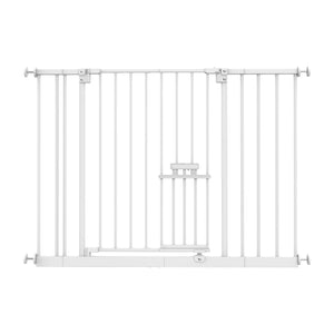 Create a pet-friendly living space with the Extra Wide Easy Fit Pet Gate. This extra wide pressure mounted gate stands at 76cm tall, suits openings 73cm to 82cm and can be extended up to 112cm wide with included extensions. Block off-limit areas to larger pets with this reliable and sturdy gate. The built in pet door measures 24cm tall x 16cm wide and is 8cm high from the ground. Allow free access for your cat, small dog, or puppy.