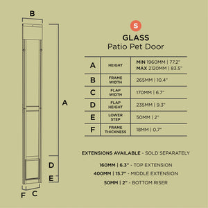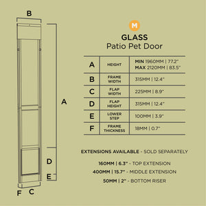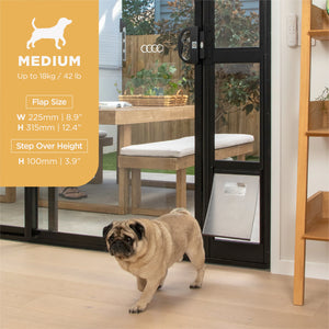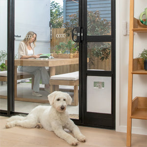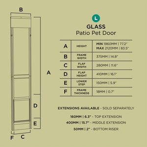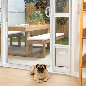 Give your pet indoor and outdoor freedom with the Glass Patio Pet Door. The durable aluminium pet door frame is adjustable to fit most sliding door doorways from 1960mm up to 2120mm tall.