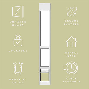 Rental Safe: Smart design allows this pet door to be securely pressure mounted in place, meaning there’s no need to screw into your door frame.