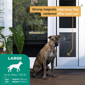 Weather Resistant: The magnetic centring catch built into the flap ensures that it will always stay closed when not in use. Clear Panels are available to easily slide into the pet door to seal off the outdoors, sold separately.