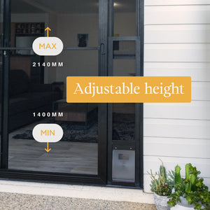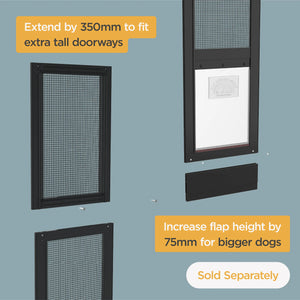 Customise to suit your home and pet: Flap measures approx. 35mm high from the ground. Add Height Extensions to the top of your pet door to suit taller doorways or to the base to increase the height of the flap to accommodate for steps.
