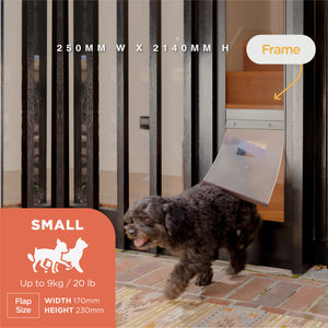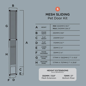 More yard time makes a happier, healthier pet. Make your best friend’s day with our Small Mesh Patio Pet Door Kit. The flap opening measures 170mm wide by 230mm tall making this insertable pet door ideal for most cats, Yorkies, Maltese, Papillons, Chihuahuas, Pomeranians, French Bulldogs. This pet door insert is suitable for most sliding door openings, extendable up to 214cm tall.