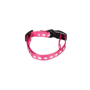 Adjustable length: 25cm (min) to 40cm (max) 1.5cm width Made from robust woven polyester Fun paw print pattern has a matching lead and harness Ideal for small breeds Keep your furry friend safe and looking stylish with this Paw print collar. The adjustable length is suitable for puppies right through to medium-sized breeds.